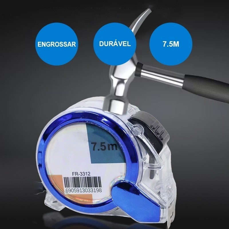 Trena com caixa plástica Curta De Aço 7,5m por 25mm Medições Alta Precisão