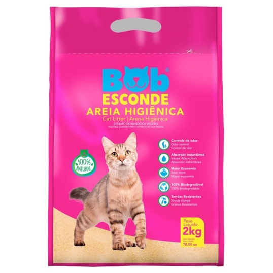 5un Areia Higiênica Biodegradável para Gatos Bob Esconde 10kgs Extrato de Mandioca e sem Odor
