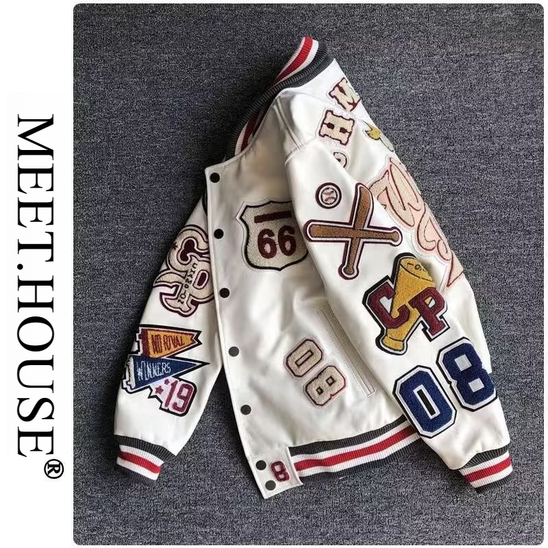 Estilo Hip Hop Carta Bordado Casaco De Couro Para Motociclista Bobber De Alta Qualidade