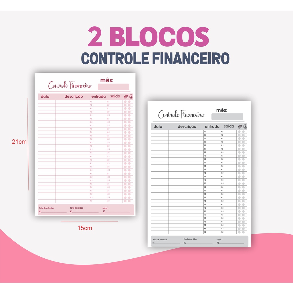 Bloco Controle Financeiro Contas Organizadas Organização Financeira Planner Finanças Controle Caixa