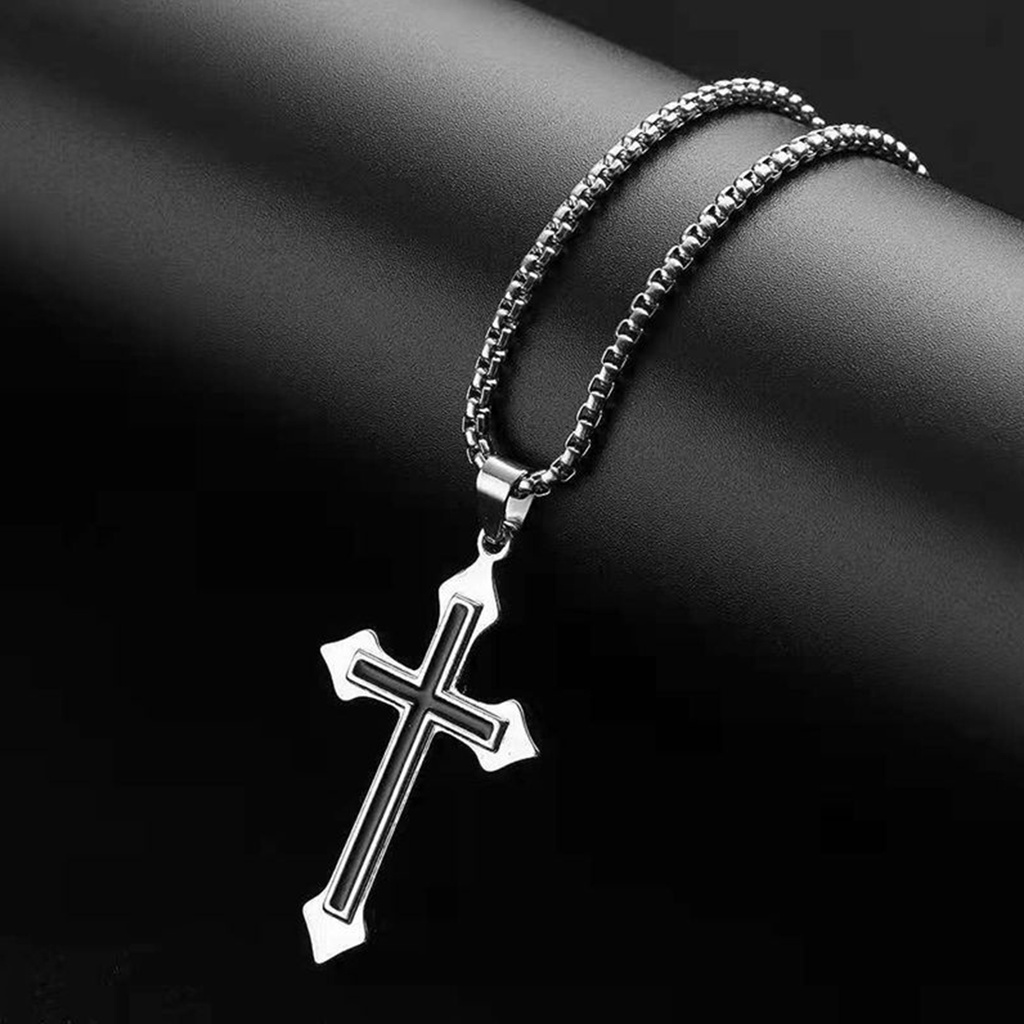 Colar Corrente Cordão Masculino Pingente Cruz Crucifixo Aço Inox Minimalista 60cm 70cm Preto Prata Inoxidável