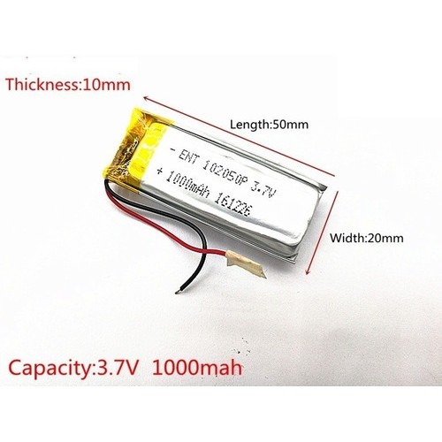 1 Peça 102050 Com 2 Fios 3,7v 1000mah 10mm X 20mm X 50mm -
