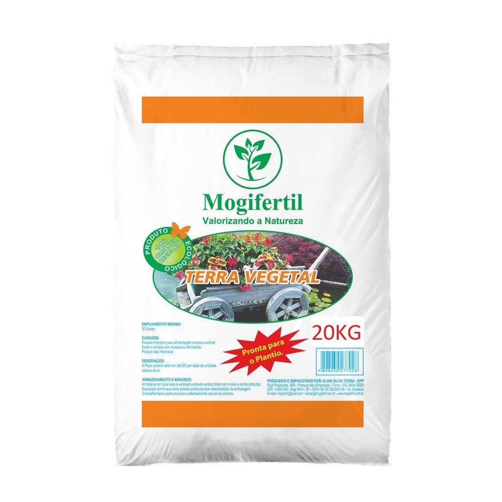 Terra Vegetal Adubada 20kg - Mogifertil Orgânica Planta Hortas Jardim Plantio