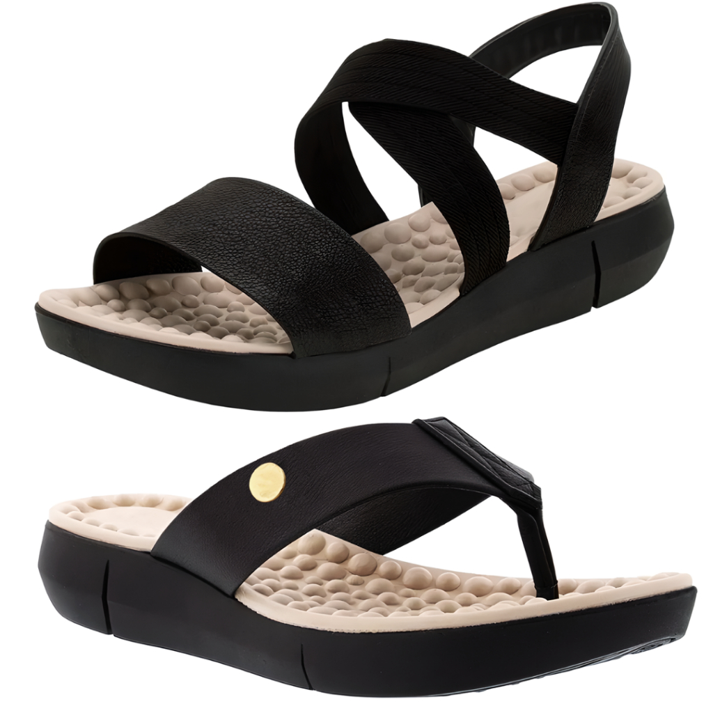 Kit 2 Pares Sandalia Chinelo Feminina Tamanco Rasteira Ortopedica Massageador Confortavel