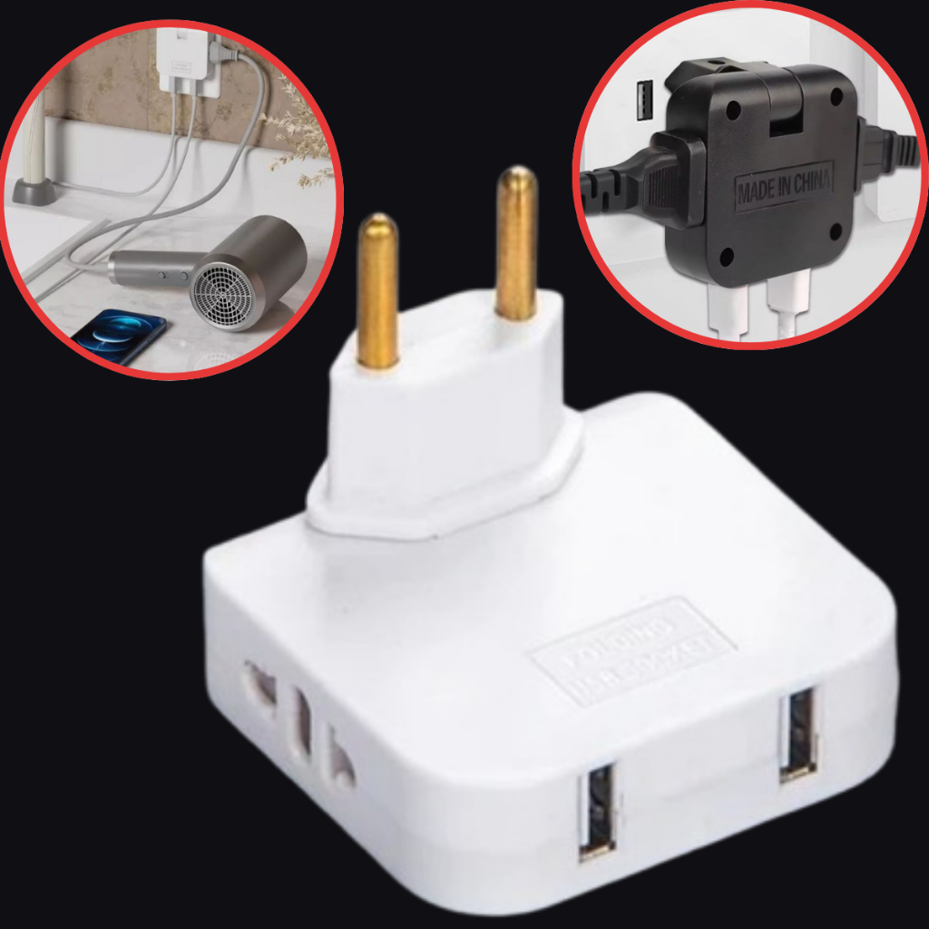 Adaptador Plug Elétrico Duplo Usb Benjamin Tomada Articulado Dobrável