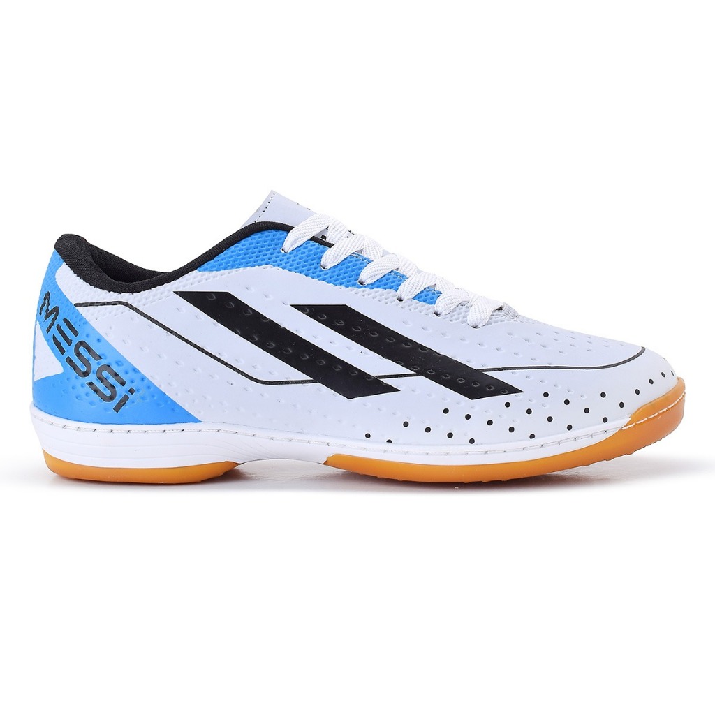 Chuteira Branca Messi Futsal com Solado Costurado Quadra e Salão