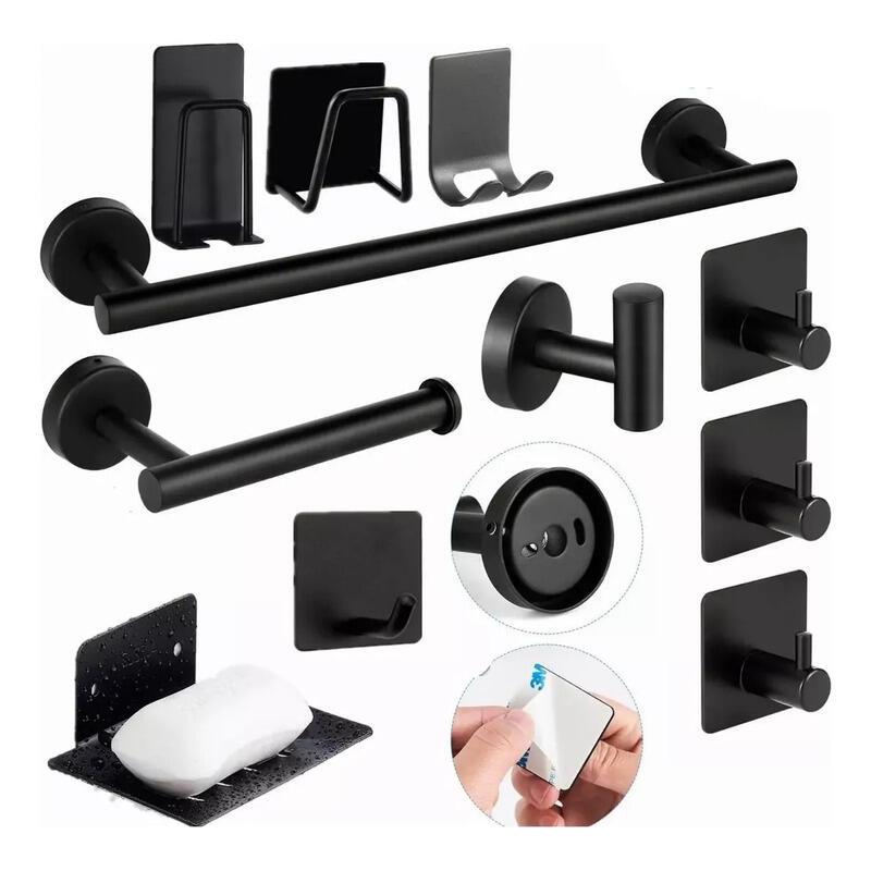 Kit Acessórios Banheiro Cabide Toalheiros Papeleira 11 Peças Cor Fosco Preto Yesop