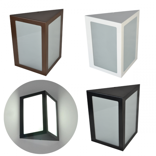 Arandela Triângulo Alumínio 2 Vidros Externa E27 Parede Muro Cores Preta, Marro ou branca Rioprelight