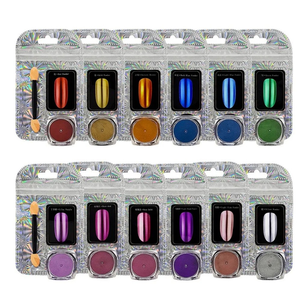 kit 6 Pó Cromo Metalizado Unhas Cromado Decoração unha