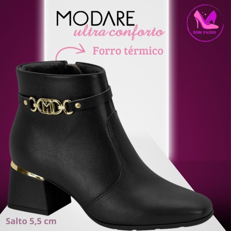 Bota Cano Curto Modare Ultraconforto Salto Médio E Zíper Lateral Moda Feminina Original