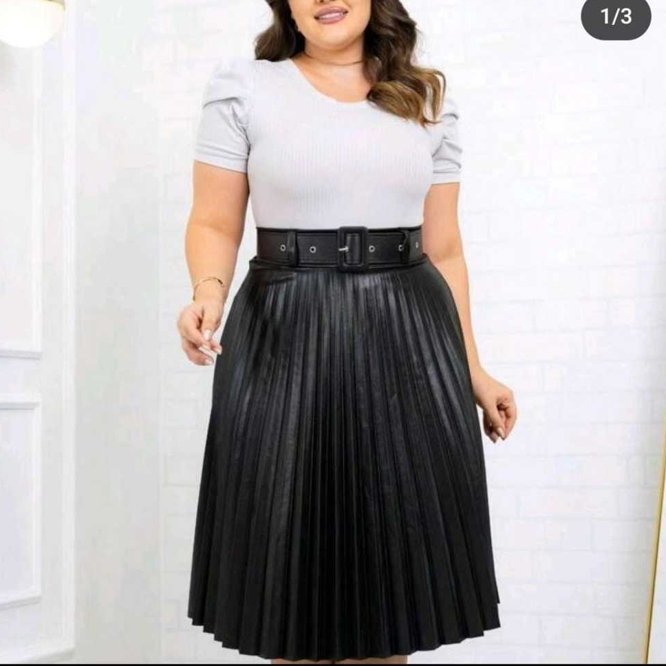 saia Midi plissada social com cinto fivela moda evangelica cod 046