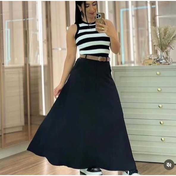 Saia Longa Alfaiataria Moda Evangélica Tendência Com cinto