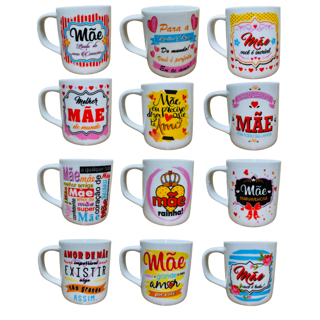 Kit 24 Canecas Dia das Mães 300 ML Porcelana Primeira Linha ideal para Café Chá Presente