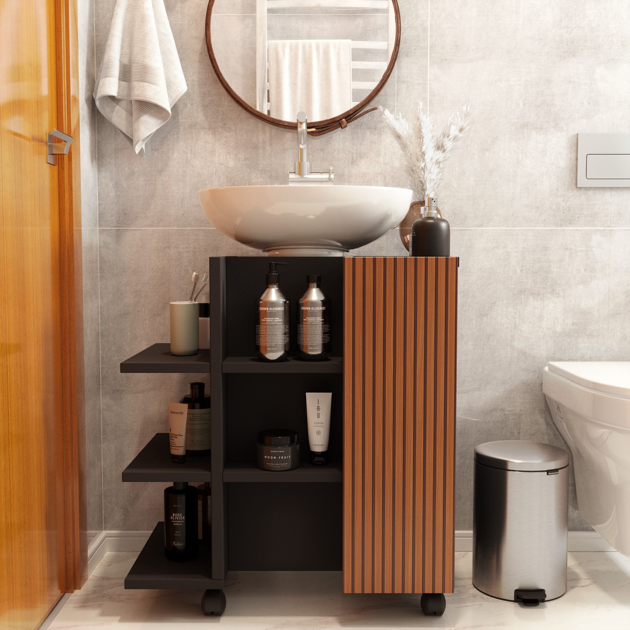 Armário Gabinete de Banheiro Classic para Pia de Coluna - Jm3 Móveis:preto/ripado
