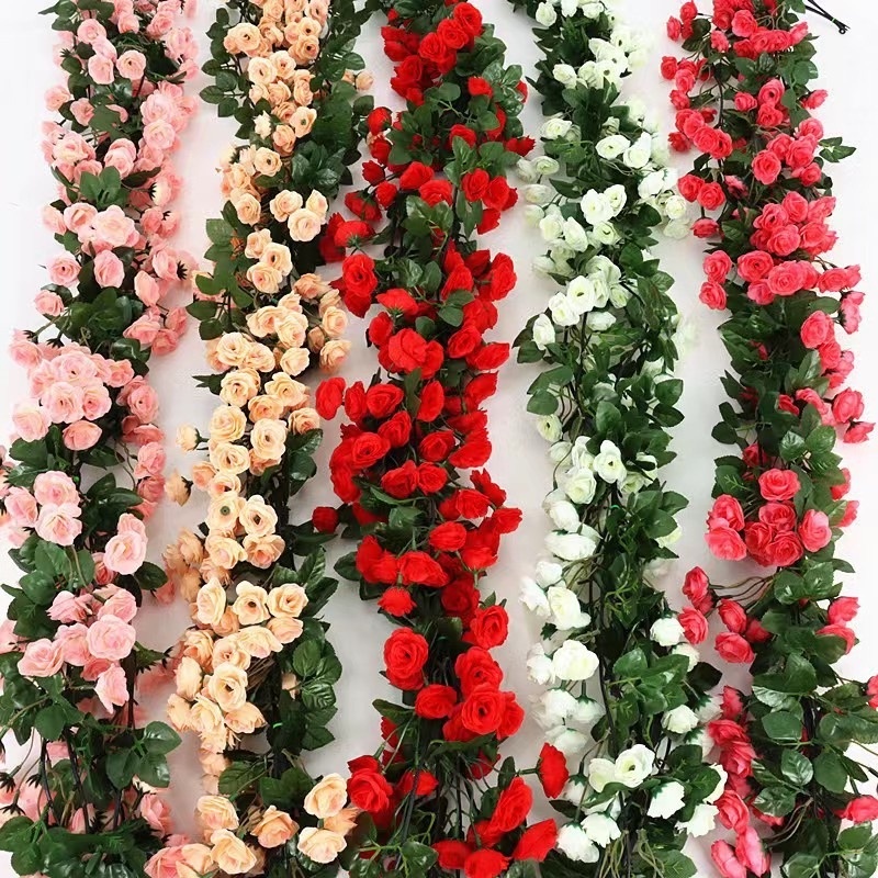 69 Cabeças 1.8M Flores Artificiais Rosas Corda De Natal Garland/Casamento De Bricolage Decoração De Sala De Aniversário De Vinha Falsa