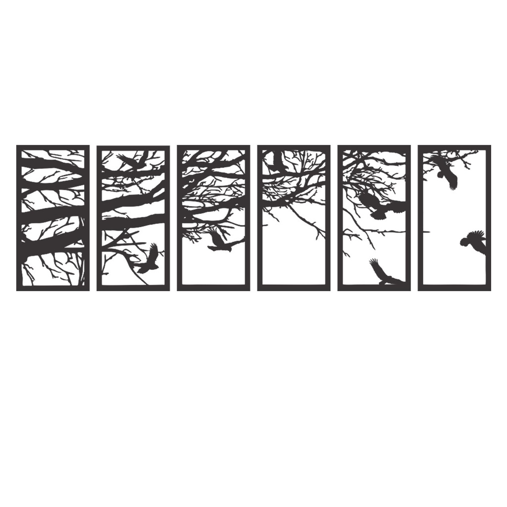 Quadro Decorativo Kit Pássaros em Revoada MDF 3mm Preto Fosco