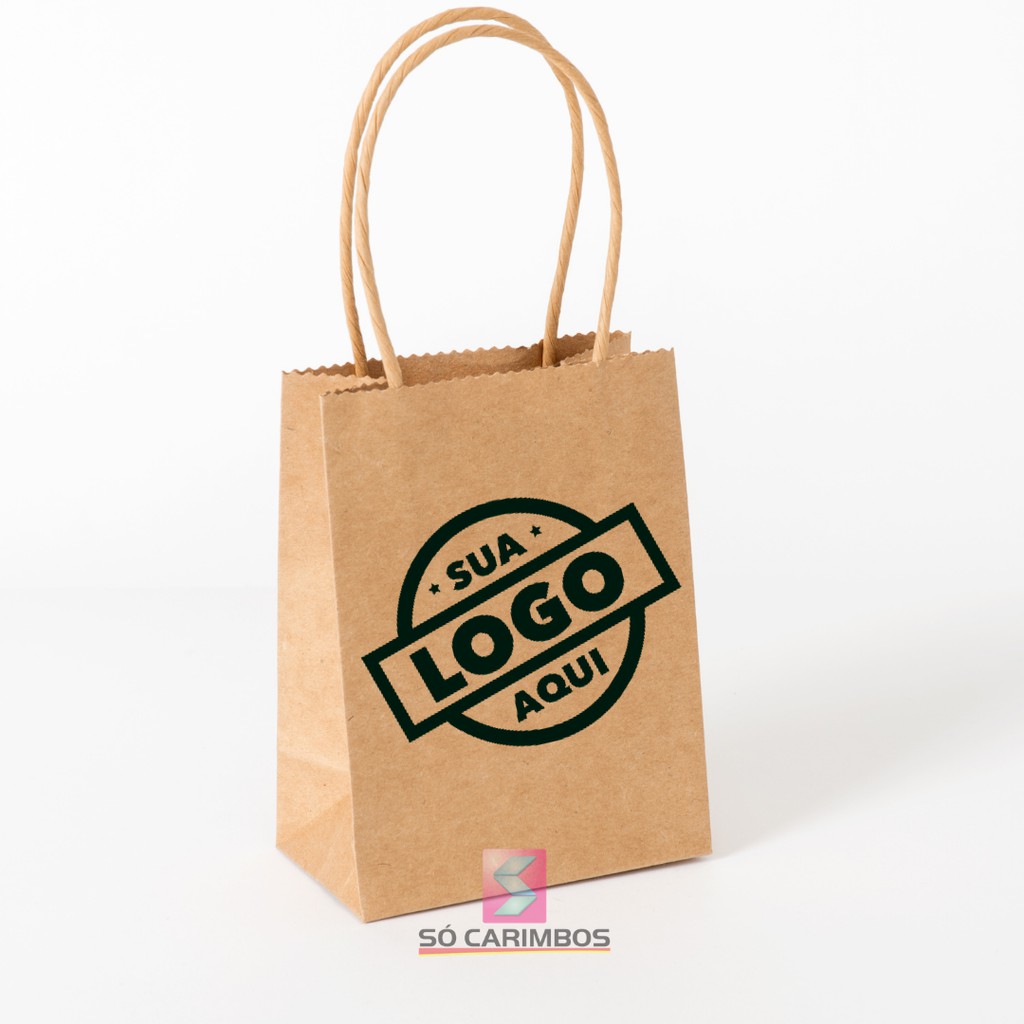 Carimbo personalizado para Sacola Kraft modelo redondo e quadrado com Gravação a laser