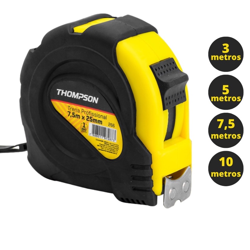 Trena Emborrachada Profissional Fita De aço 3m 5m 7,5m 10m Thompson