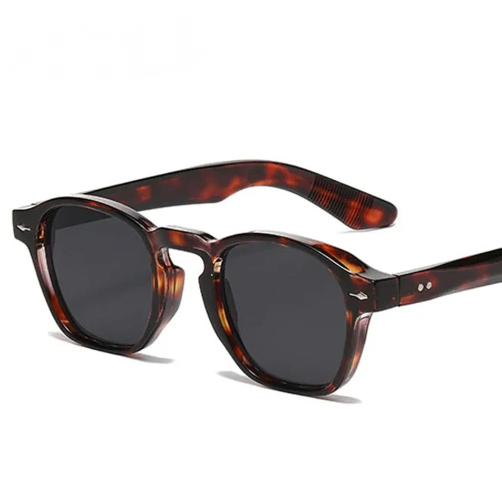 Rebites Quadrados Femininos Retro Chá Gradiente Óculos De Sol UV400 Homens Punk Leopard Blue Com Dobradiça Metálica