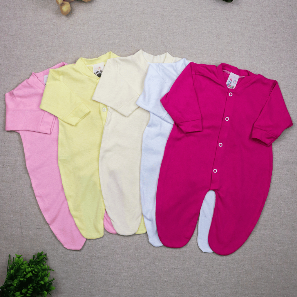 Kit 5 Macacão Malha Com Pé Liso - Recem Nascido (P/M/G)