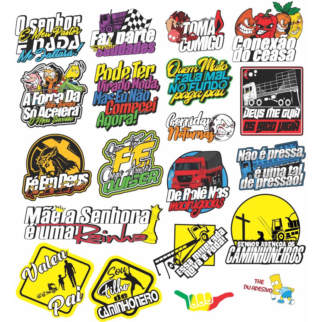 Adesivo Caminhão Kit 3 Cartelas Boa Cola Boa Resolução Pode Molhar Moto Carro Caminhão Bike