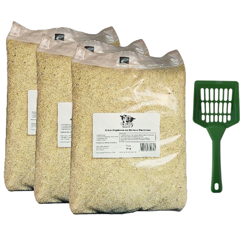 Kit 3 Areias Higiênica Biodegradável de Milho e Mandioca/ 3 pacotes de 4Kg (12kg no Total)