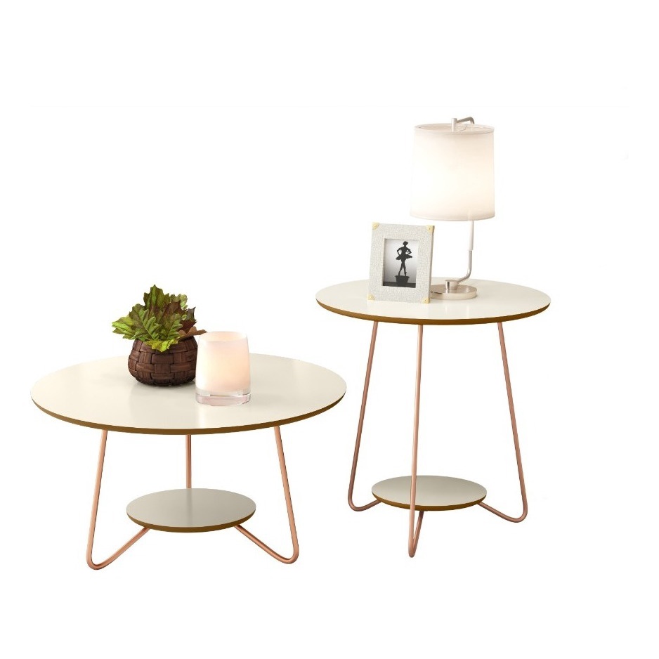 Jogo de Mesa Sala Cetro / Apoio liz - Off White / Freijó