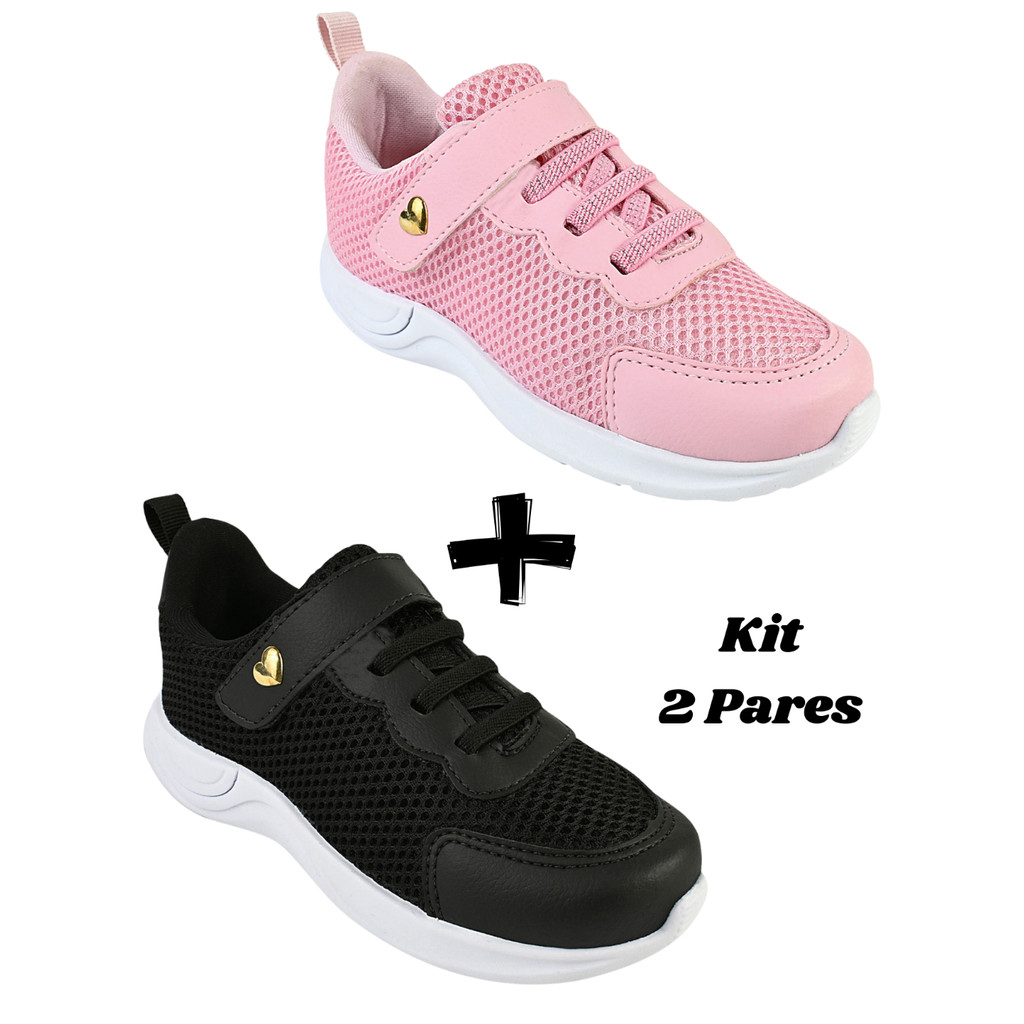 Kit 2 Pares Tênis Infantil Menina Sapato Escolar Feminino Confortável e Resistente