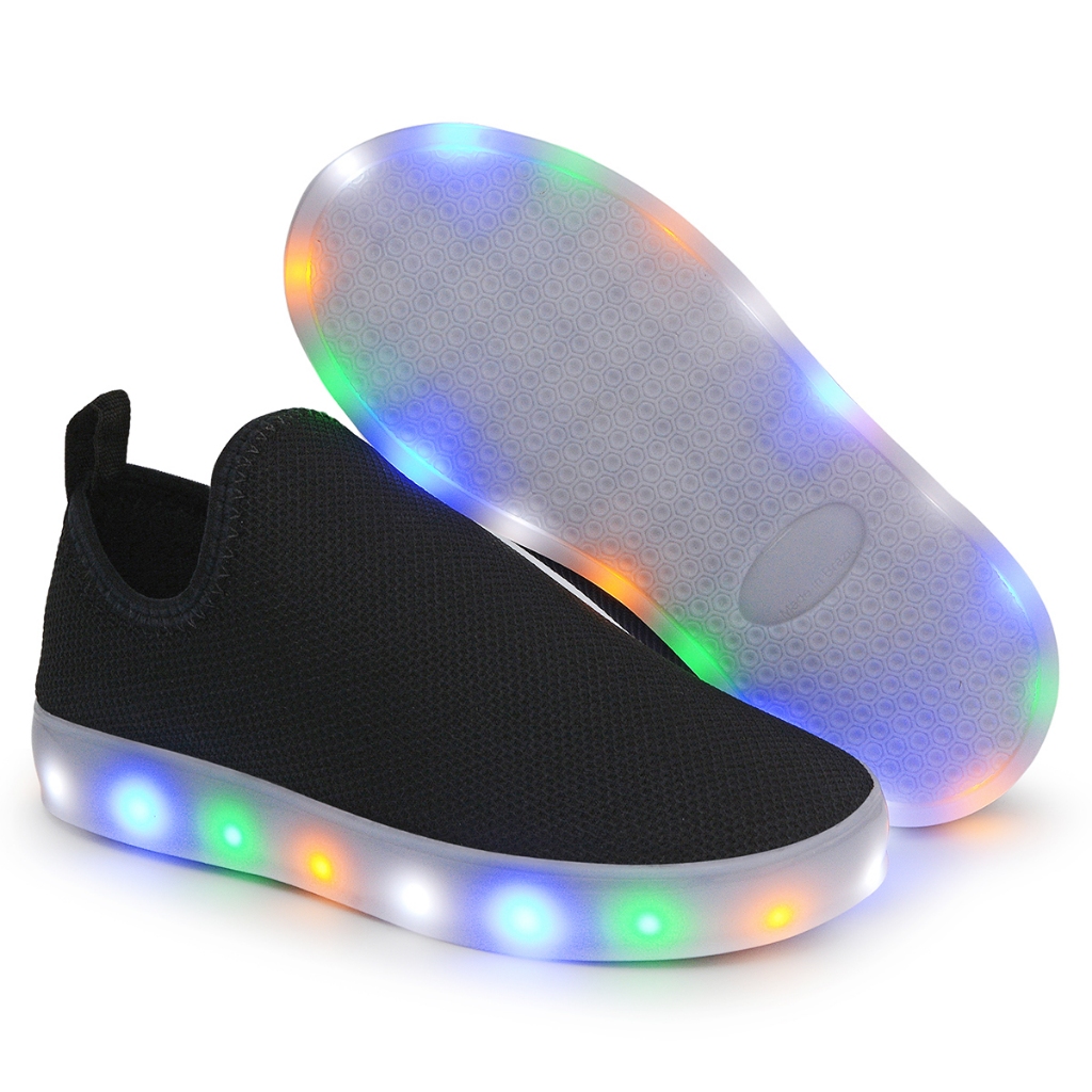 Tênis Infantil Led Fita Luzinha Preto Menino e Menina Escolar Unissex Casual Calce fácil