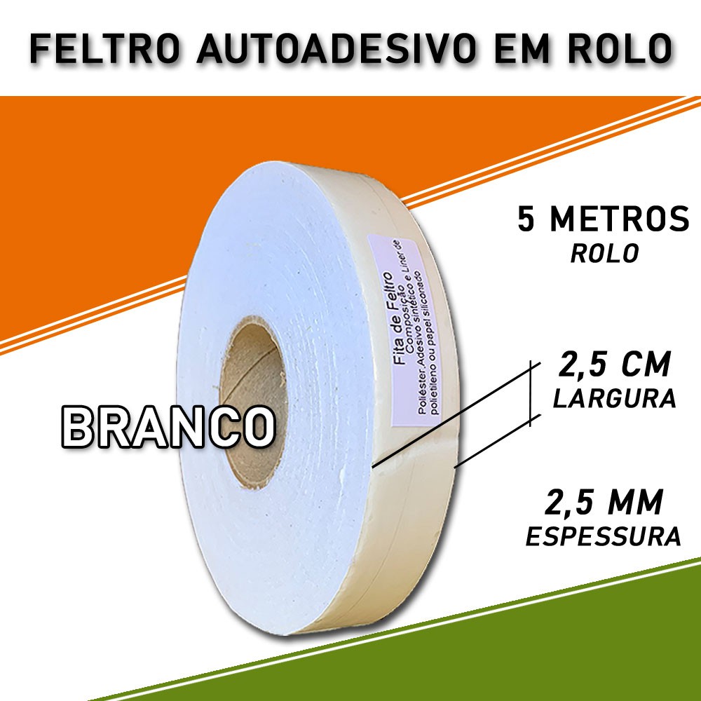 Fita Feltro Antirruído Adesivo Autocolante 1 Lado 25mm x 1,2mm Rolo Com 10 Metros