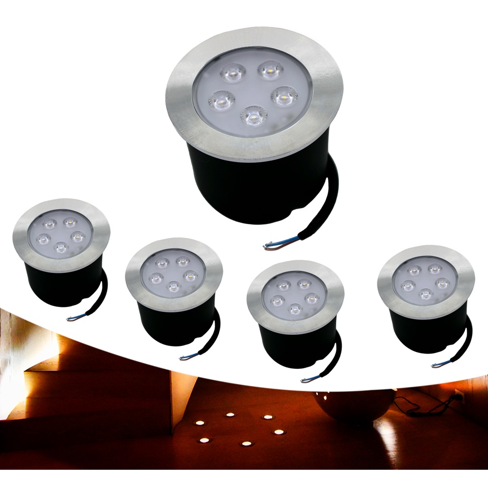 Kit 5 Balizador Spot Led Embutir Chão Piso Jardim 5w Quente