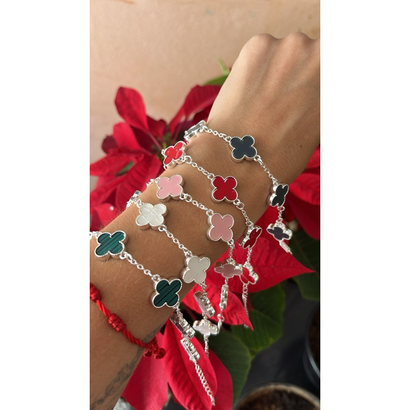Pulseira trevo flor Virgínia Ludmilla 5 trevos colorida banhada a prata legitima (Postamos seu pedido em 24 horas)