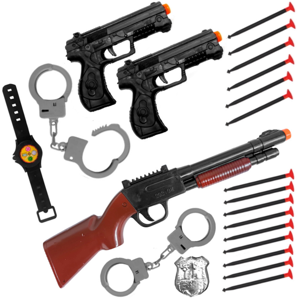 Kit 3 em 1 Brinquedo Infantil Lançador de Dardos com Algemas e Distintivo