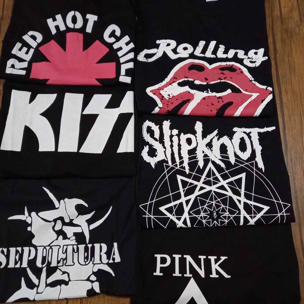 Camisetas Rock'n Roll Preto Muitas Bandas Diferentes Unissex