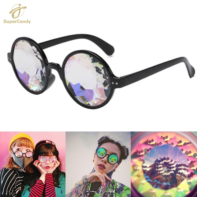 Caleidoscópio Óculos Redondos Para Homens Festa Retro Rave Festival Feminino Prego Holográfico Mosaico Prisma De Sol Cosplay