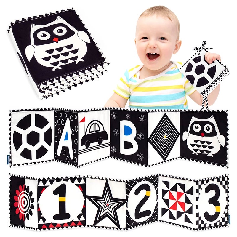 Bebê Livro De Pano Macio , Alta Contraste Preto & Branco Livros Do , Lavável E Sensor De Barriga Tempo Brinquedos Para Crianças Infantis