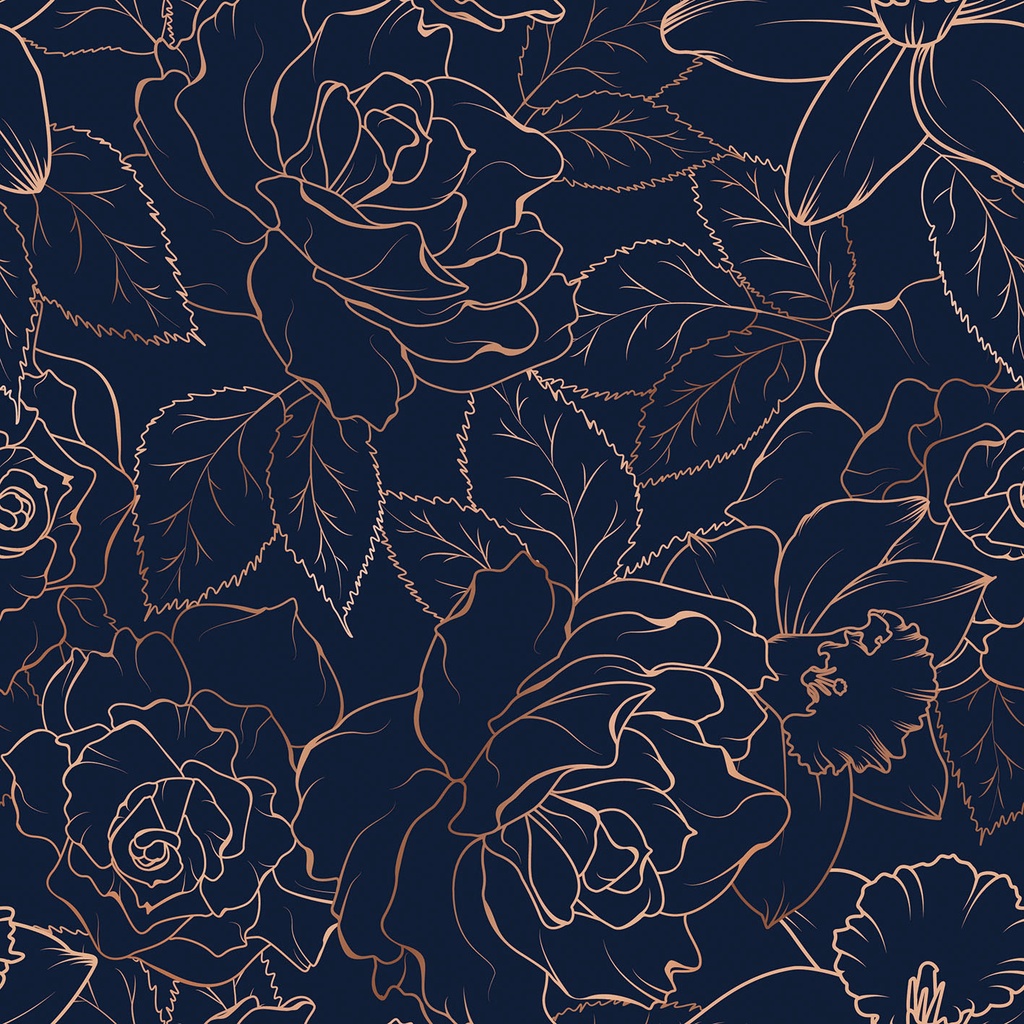 Papel De Parede Adesivo Lavável Zara Azul Marinho Dourado Bactericida Rolo