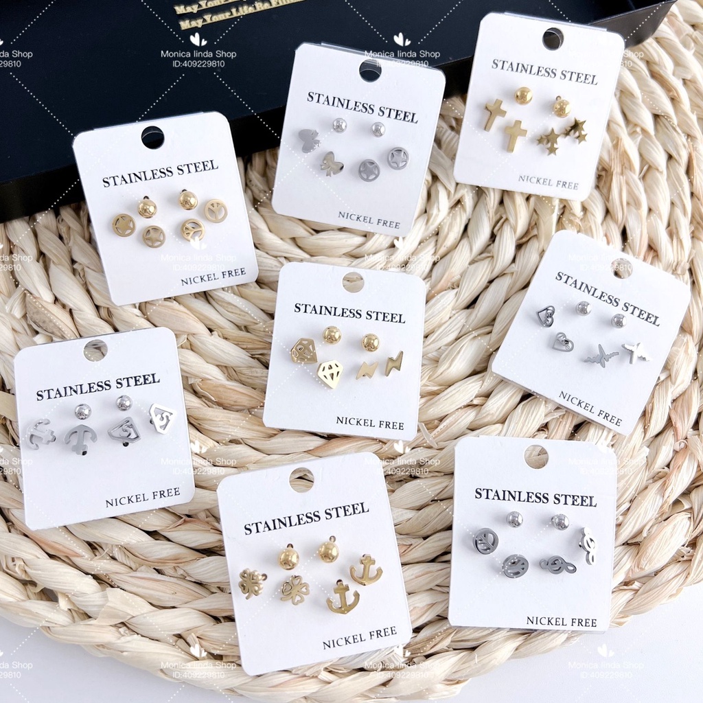 Kit 3 pares Brincos de Aço Inoxidável Vários Modelos Antialérgico masculino/femenina
