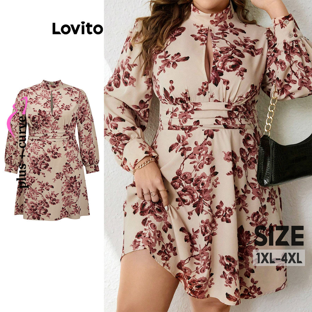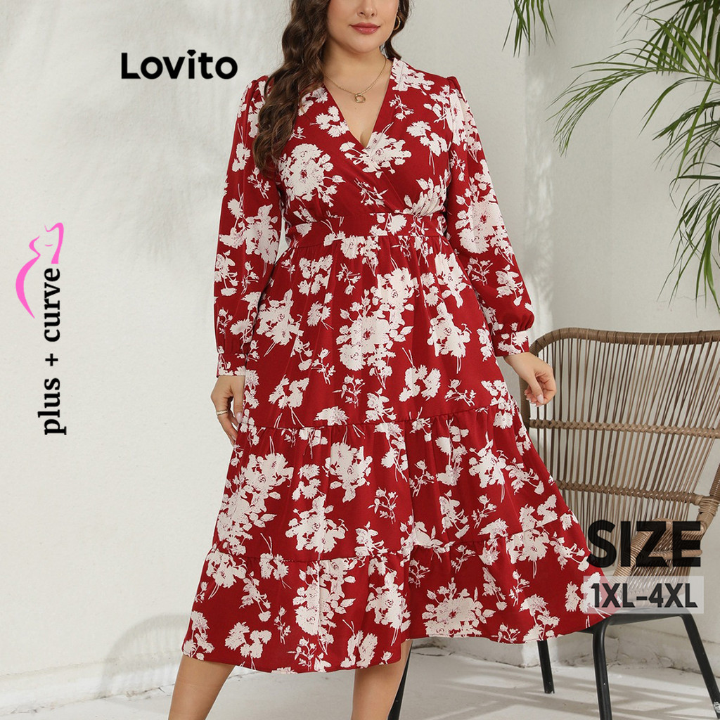 Lovito Vestido plus size curvo elegante com flores florais ditsy para mulheres LNL65192