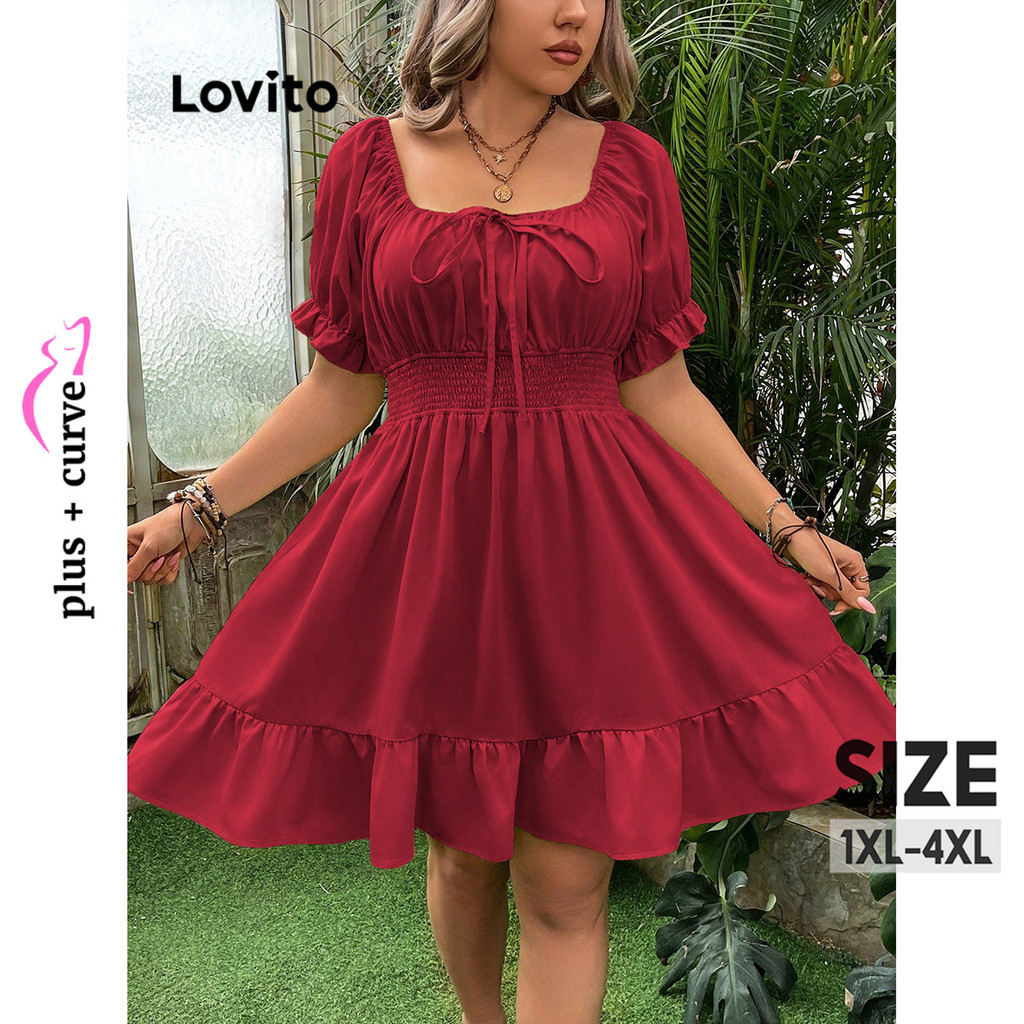Lovito Vestido plus size curvo elegante liso com renda para mulheres LNL68197