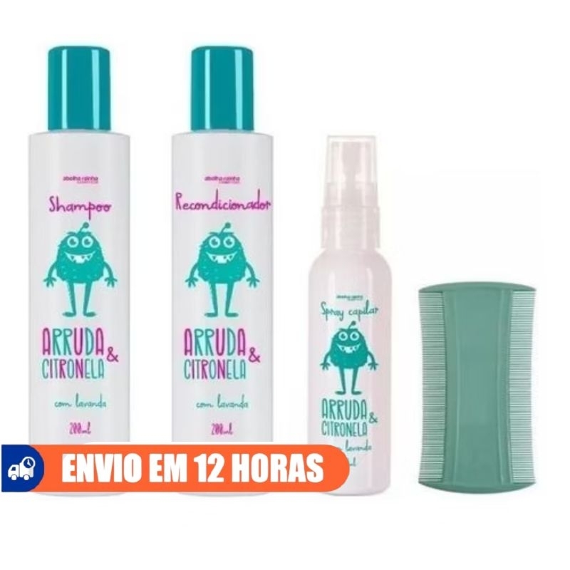 Kit Mata Piolho e Lêndeas ,Arruda e Citronela Shampoo ,Recondicionador, Spray e Pente Abelha Rainha
