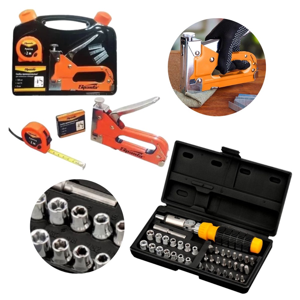 Kit de grampeador tapeceiro de alta pressão com 500 grampos + soquetes com 41 peças - Sparta/Titanium