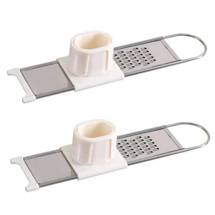 EM CASA TEM - Conj. 02 Raladores e Fatiador Aço Inox Alho Noz Moscada