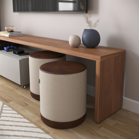 Puff Banquinho Alexa Decoração Casa Sala Escritório Linho Bege