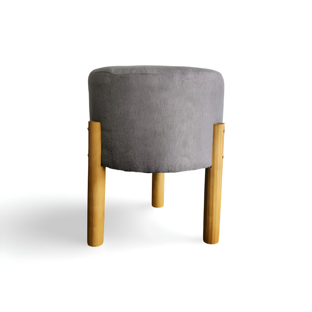 Puff Banquinho Pés Palito Madeira Redondo Sala de Estar Decorativa Linho