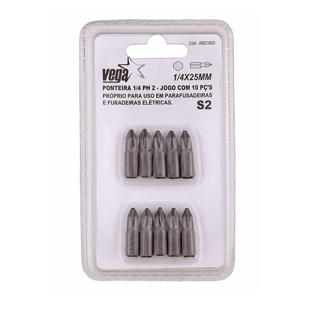 Ponteiras para Furadeira 1/4X25mm PH 2 - Jogo de Bits - Vega