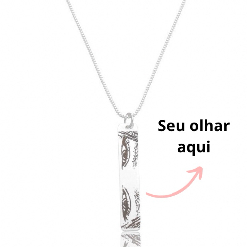 Colar personalizado à laser plaquinha “olhar” banhado à prata 925