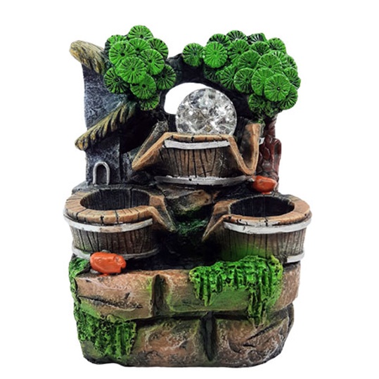 Fonte Água Decorativa Pedra Relaxante Led Floresta Moinho