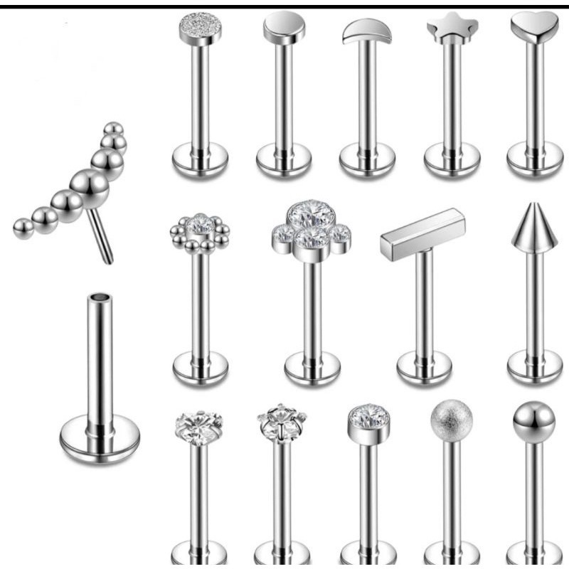 Piercing Labret pin push de plug Trágus, helix estrela, coração, lua, sol aço cirúrgico
