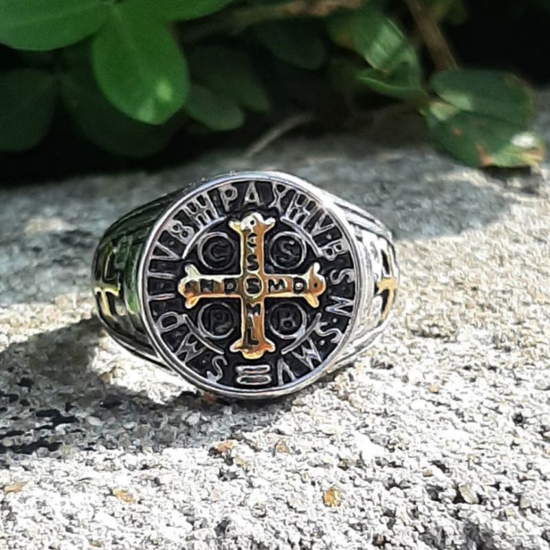 Anel Masculino São Bento Cruz Sagrada Aço Inoxidável 316l Garantia 5 anos Pode Molhar Não Escurece